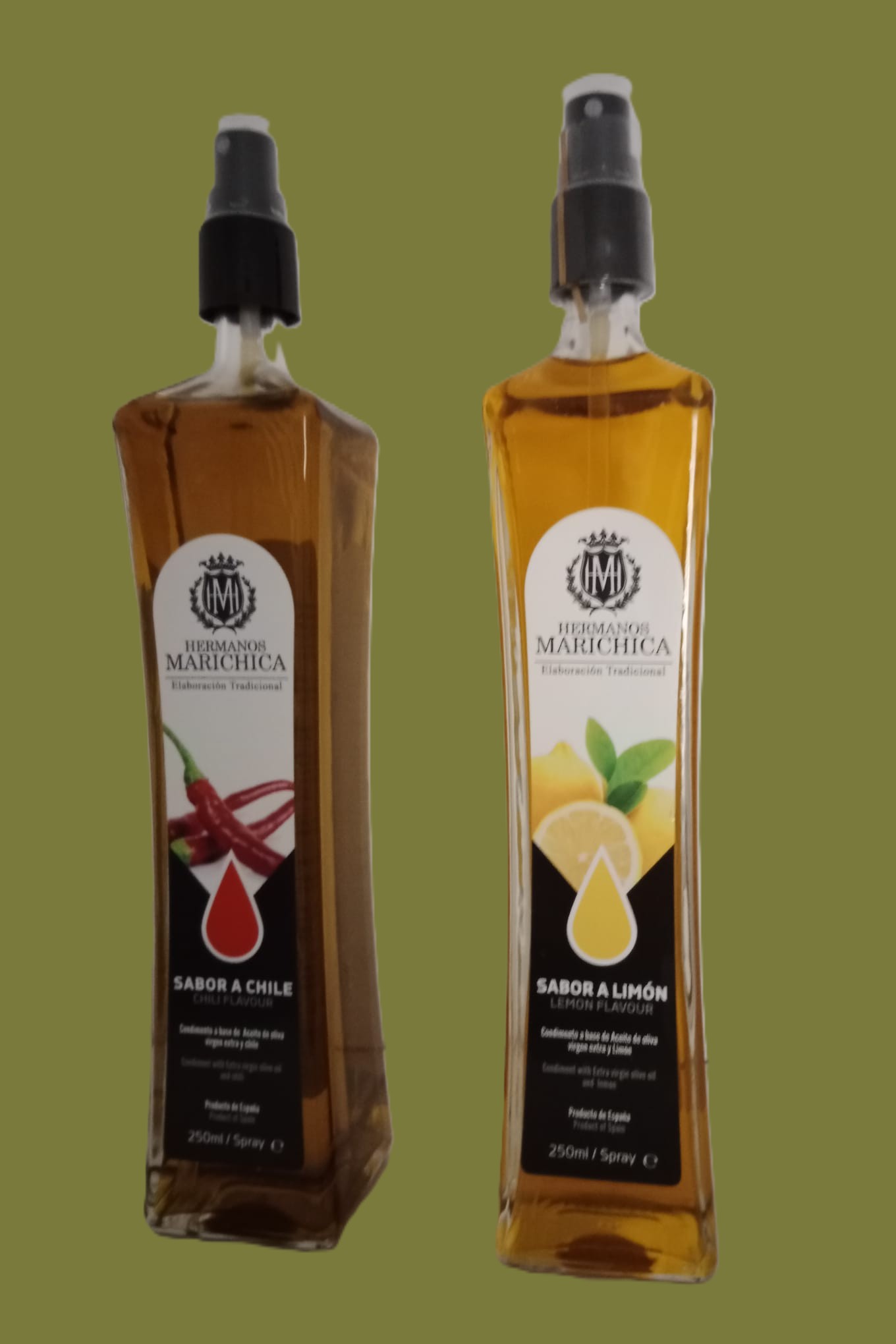 We offer extra virgin olive oil sprays, either plain or with natural aromas including lemon, garlic, chilli, truffle and traditional herbs. This smooth, well-balanced blend is perfect for salads, meats, and for finishing dishes.